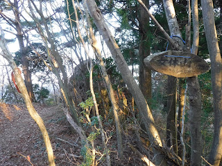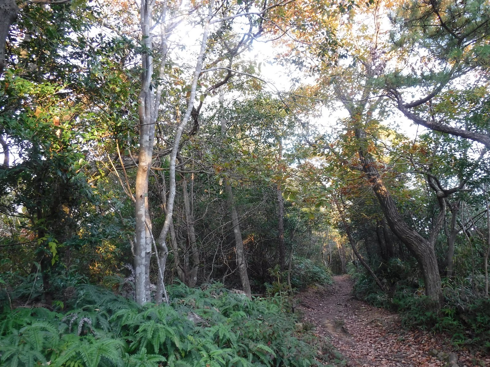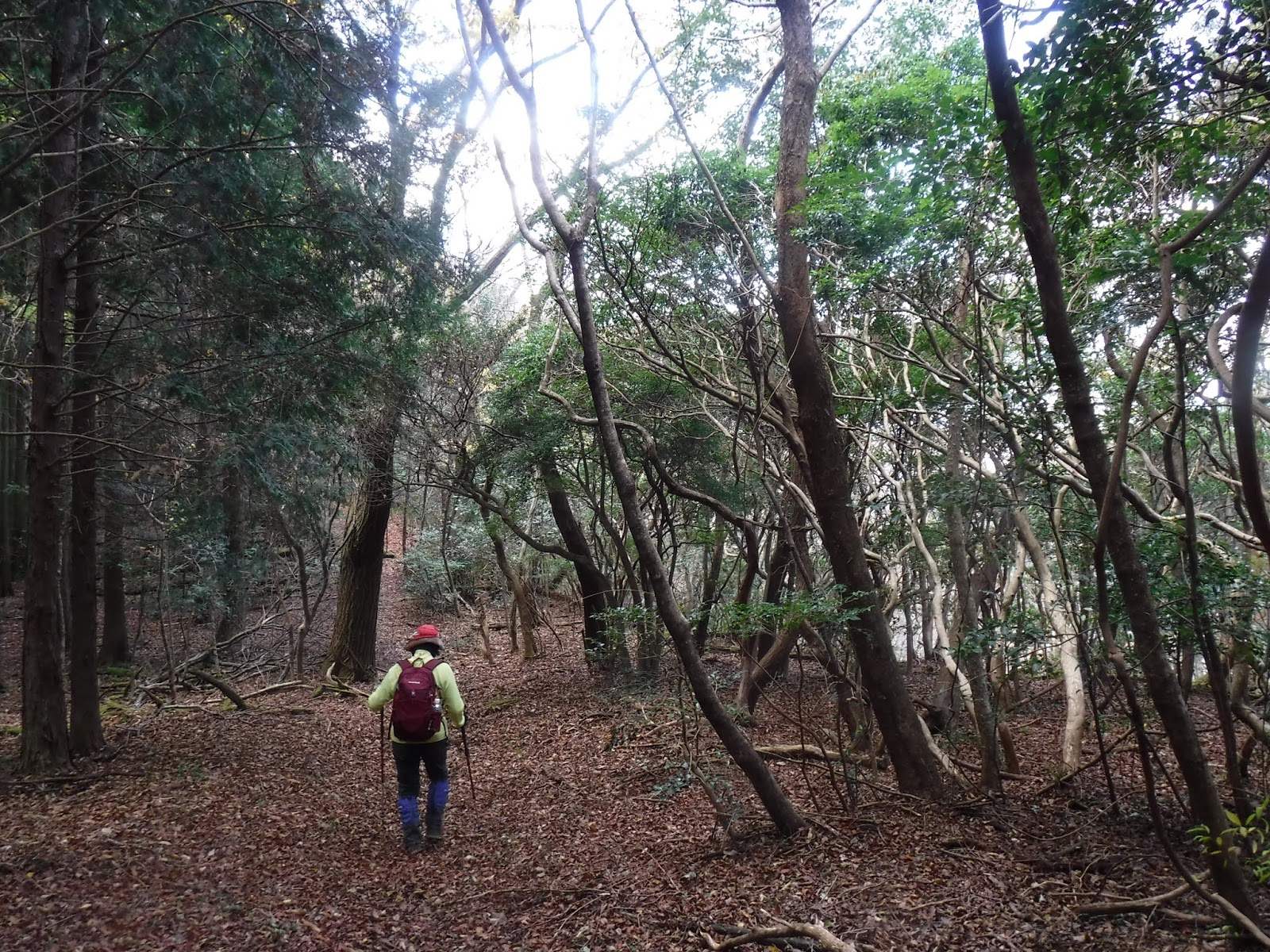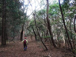 登りあがった「藍染山(あいそめやま 414m)」は、びっしり立つ自然林の中展望は全くない。それでも「自然林」の先の展望が頭に浮かぶから面白い。