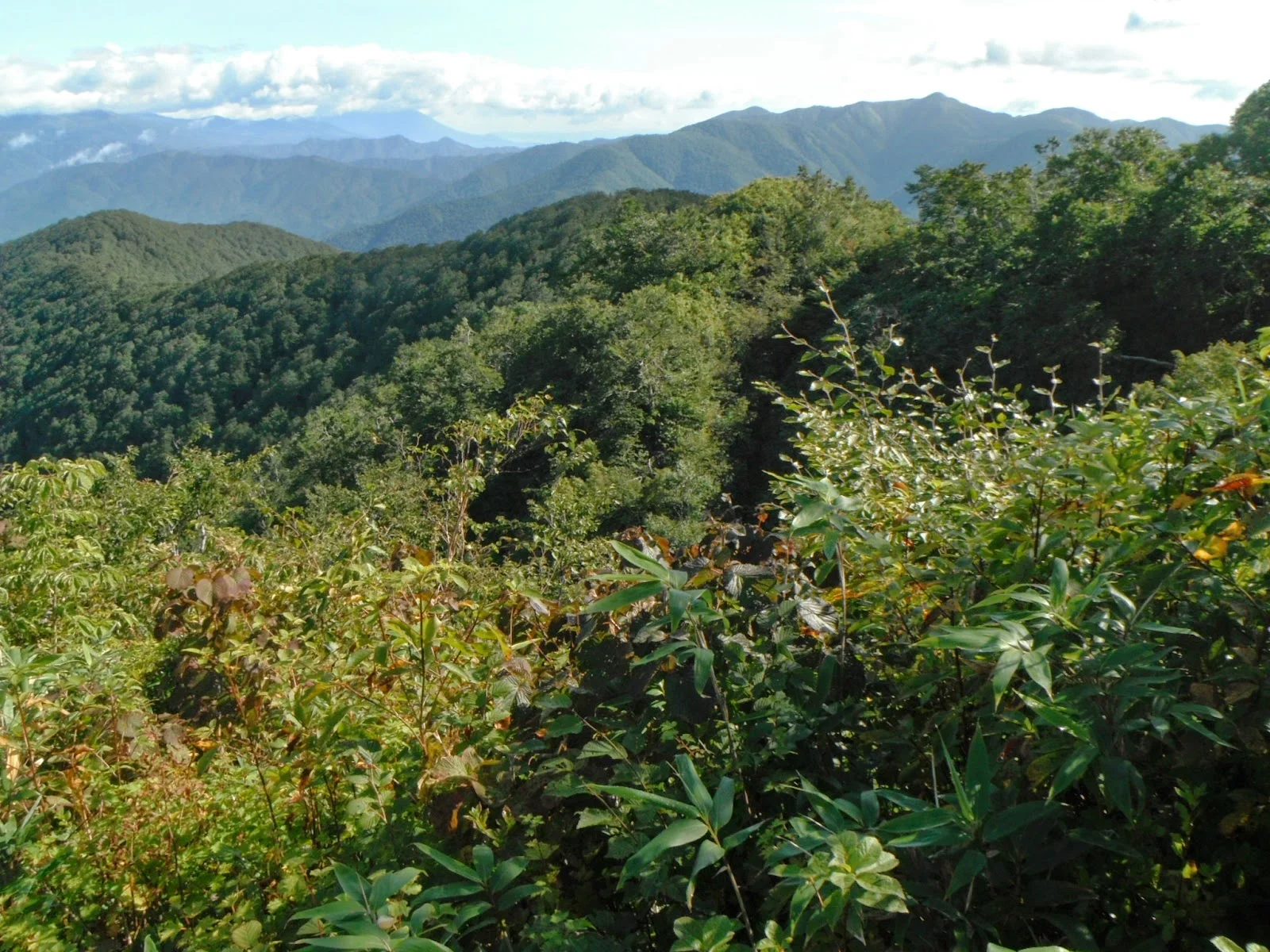和賀岳北方の山が見える、そのはるか北には雲に隠れた岩手山と秋田駒ヶ岳も見えて流石の展望台だ