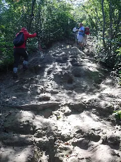 登っていくと「根っ子と岩」の登山道に早速変わる