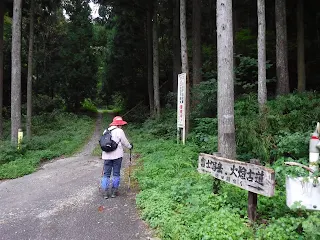 山中温泉から7㎞、丸岡・山中トンネル入り口で旧国道364号に入ると登山口の案内板が立つ、登り2時間の表示がある。
