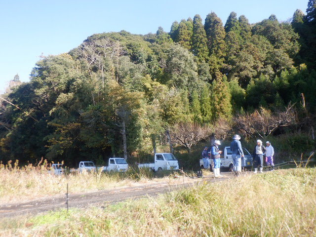 0750時、地元若手衆(50代~70代)?が集合して「休耕田」の草を刈る