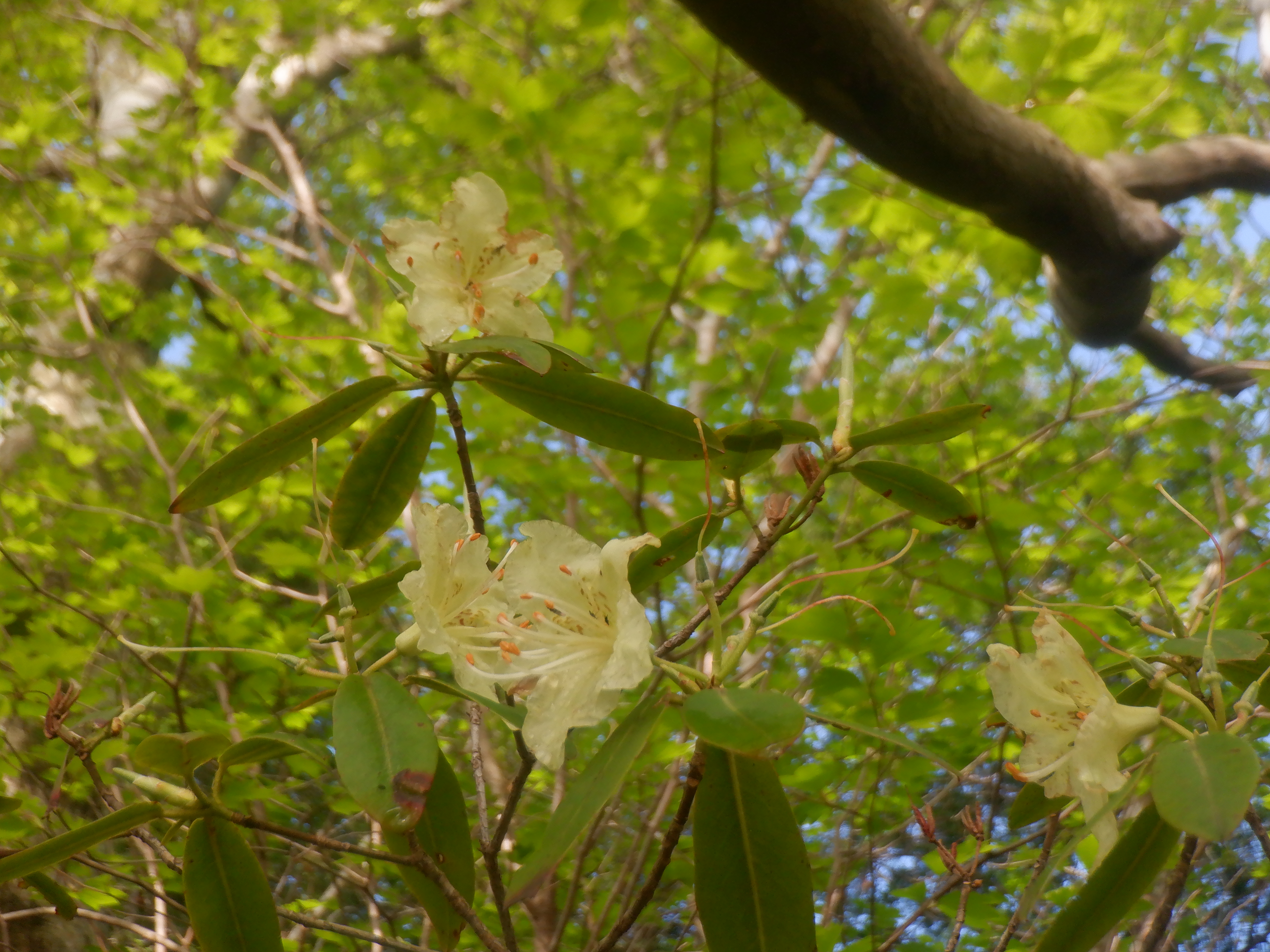 今この瞬間の「二ツ岳(ふたつだけ 1257.1m)」と云えば「ヒカゲツツジ」の大群落の花、花、花の筈だが遅かった。それでも薄黄色の小さな花が迎えてくれる