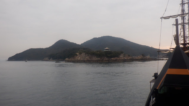 道の駅「笠岡ベイファーム」から24km走り0730時鞆の浦港発仙酔島行き「いろは丸」に乗る